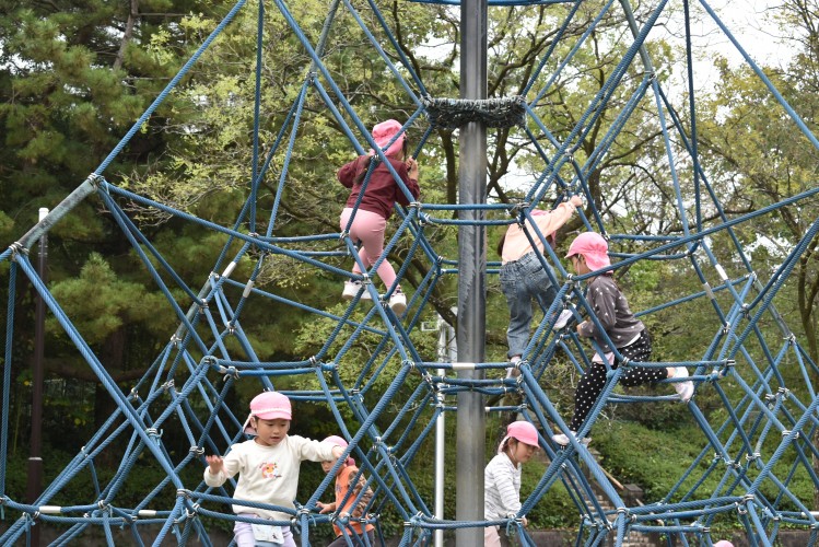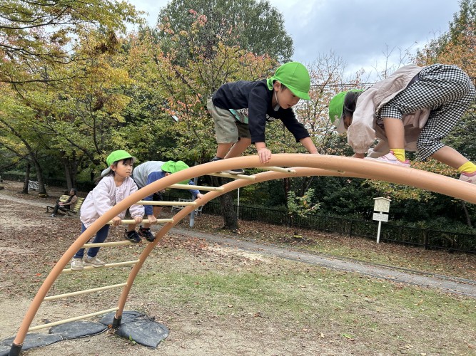 高いタワー、バランスが必要な一本柱(?)など、いろんな遊具に挑戦してきました!