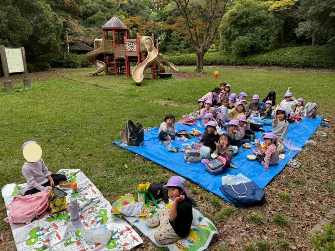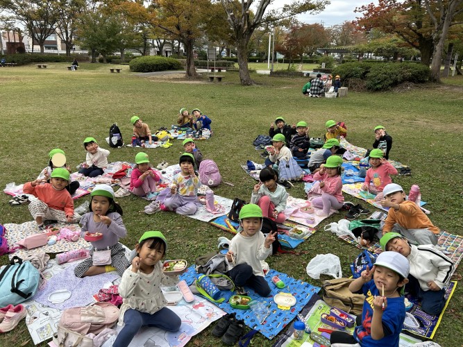 お弁当を食べた後、「保育園帰るよー」と言うと「もう帰るの~」とまだ遊びたいと子どもたちでした。また、行こうね。