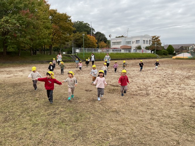 「オオカミだぞー」「隠れて隠れて」「きゃー」と広い公園で追いかけ隠れ遊びなどを楽しみました(^o^)