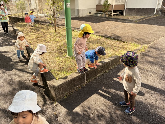 もも組(1・2歳児)は団地裏路地へ